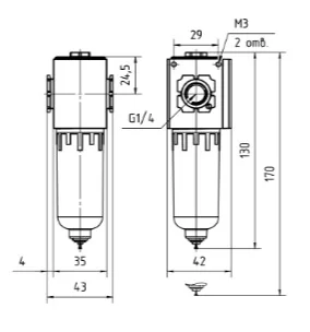 Монтажные размеры1/4 G; 43 х 42 х 170