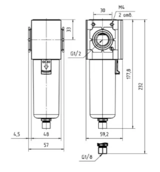 Монтажные размеры1/2 G; 57 х 59,2 х 232