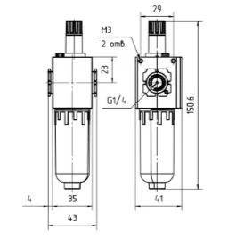 Монтажные размеры1/4 G; 43 х 41 х 150,6
