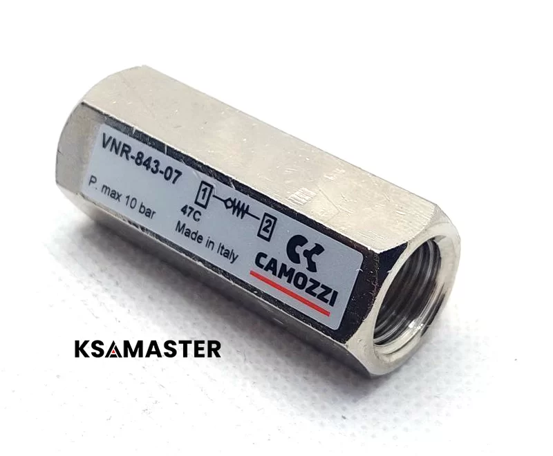 Купить Обратный клапан VNR-843-07, производства Камоцци (Camozzi), вы можете в компании KSAMASTER (КСАМАСТЕР), оформив заказ в интернет магазине, отправив заявку по почте info@ksamaster.com, позвонив по телефону +7 (8552) 919-689 или в офисе компании